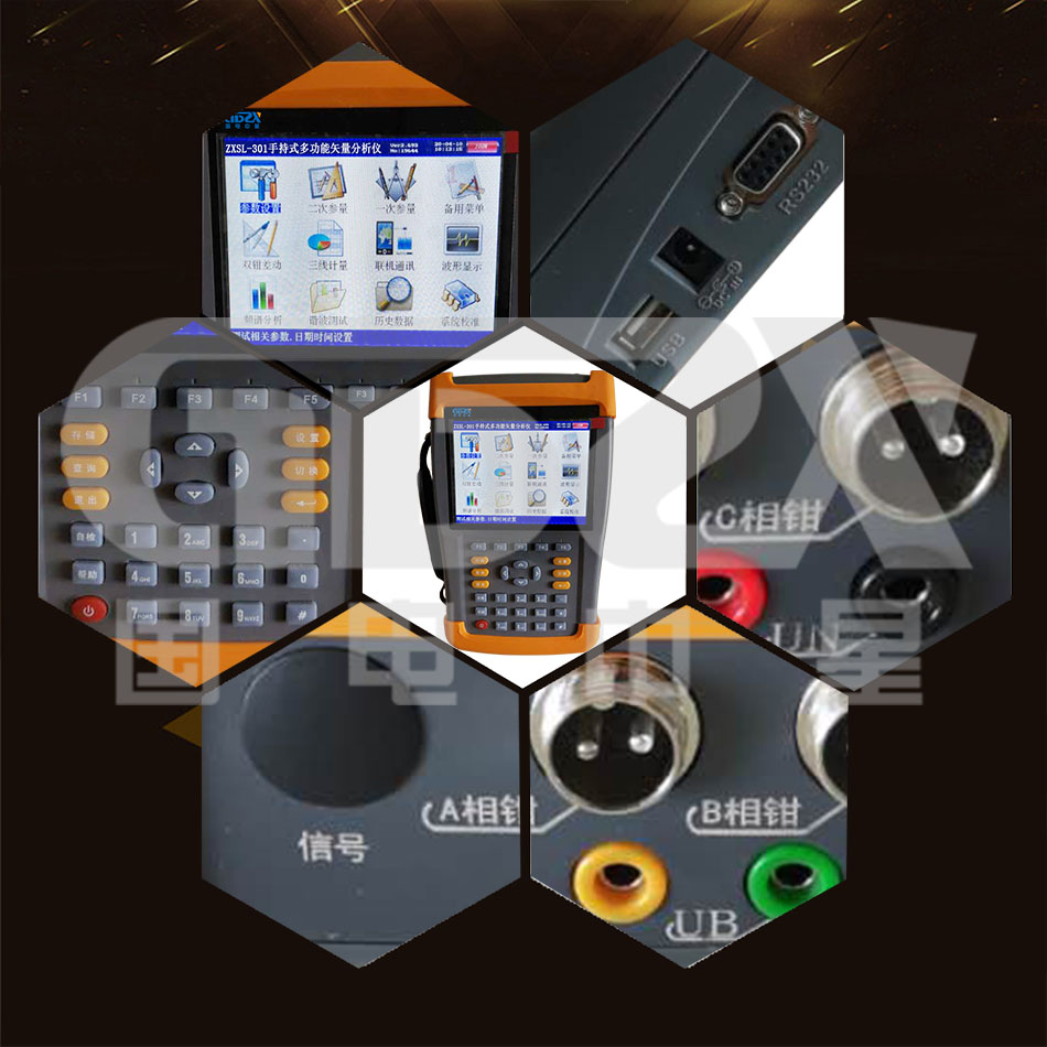 ZXSL-301手持式多功能矢量分析儀采用DSP交流采樣,可同時(shí)測(cè)量三路電壓和三路電流模擬量,儀器六通道矢量同屏顯示,人機(jī)對(duì)話(huà)界面友好。自主研發(fā)開(kāi)模的手持式結(jié)構(gòu),高強(qiáng)度工程塑料,堅(jiān)固且輕便,使用簡(jiǎn)便,大大方便了現(xiàn)場(chǎng)使用,是電力工作者的得力助手。